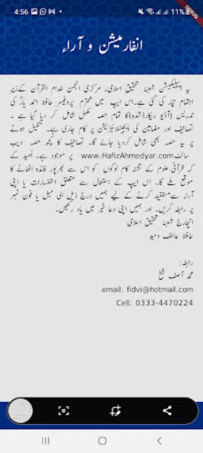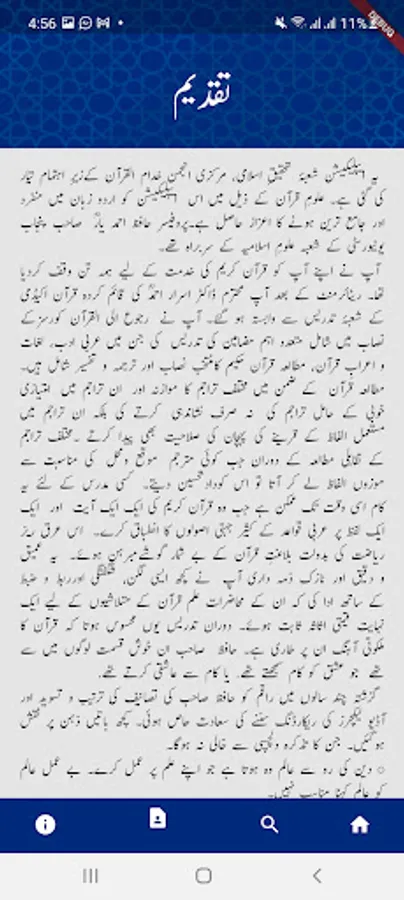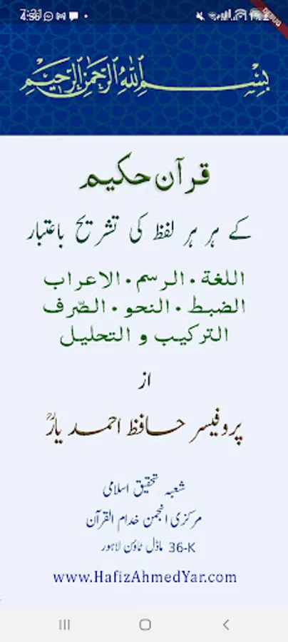 یہ ایپلیکیشن شعبۂ تحقیقِ اسلامی، مرکزی انجمن خدام القرآن کےزیرِ اہتمام تیار کی گئی ہے۔ علومِ قرآن کے ذیل میں اس ایپلیکیشن کو اردو زبان میں منفرداور جامع ترین ہونے کا اعزاز حاصل ہے۔