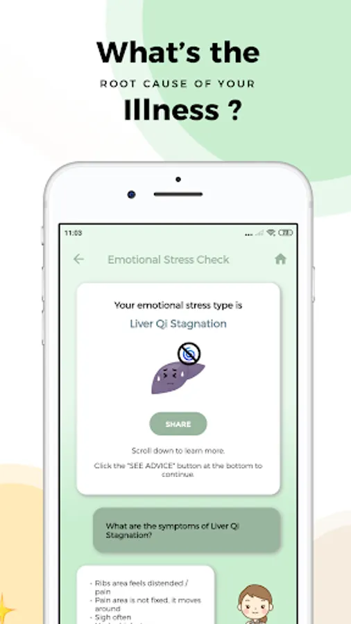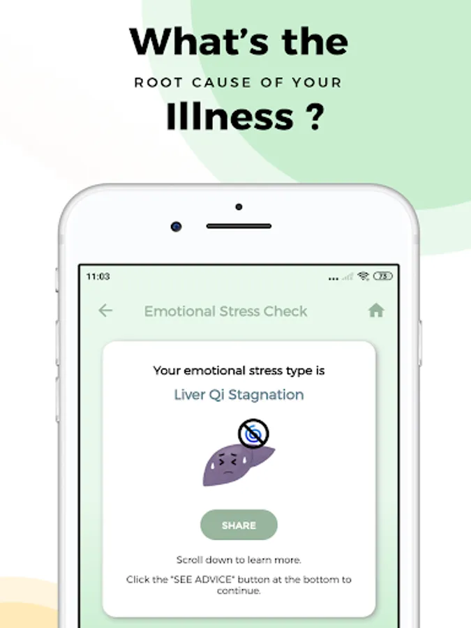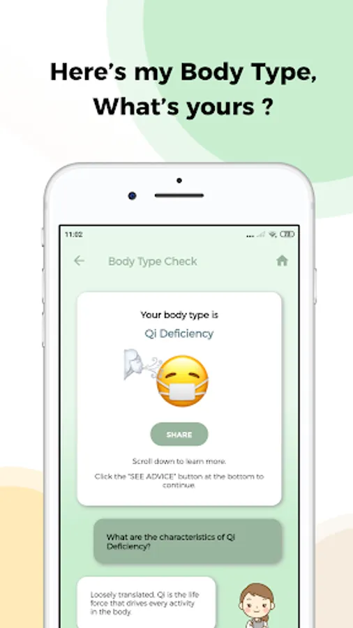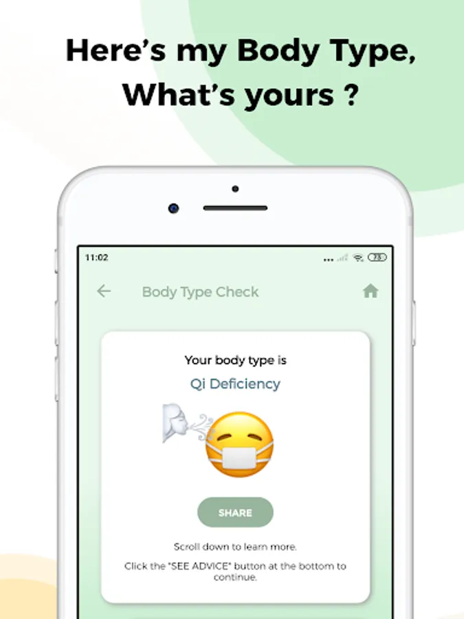 Kanpobliss is a health check app that uses Traditional Chinese Medicine (TCM) to check your body's condition. Based on the health check result, the app will provide advice on what you can do to improve your condition (self care). Advice includes: