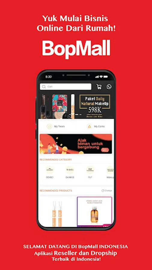 BopMall adalah Aplikasi Reseller Terpercaya se-Indonesia yang dapat memudahkan Ibu Rumah Tangga, Karyawan, Pengusaha, Mahasiswa, pedagang grosir untuk menghasilkan pendapatan dari rumah.