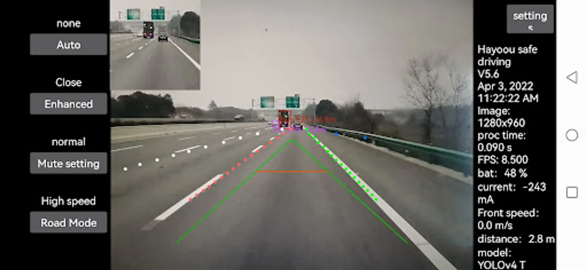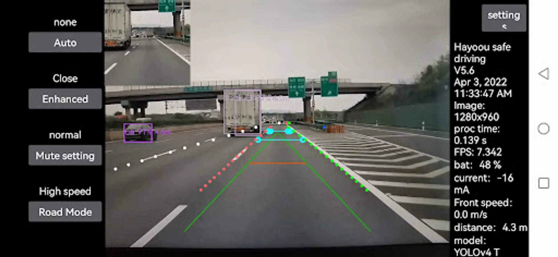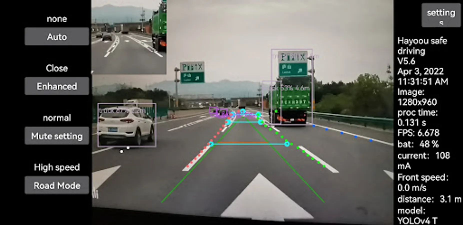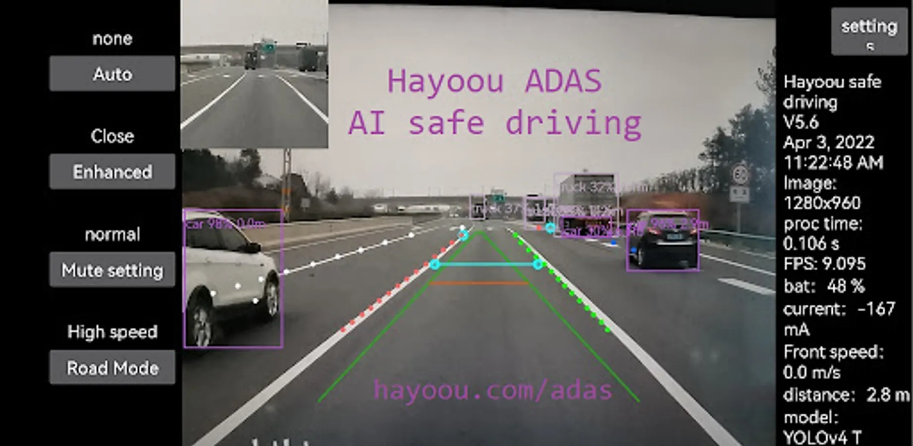 Hayoou Safety Assisted Driving adopts the latest AI algorithm at the end of 2021, and helps drivers to travel safely through the assistance of AI lane recognition and intelligent identification of people and vehicles.