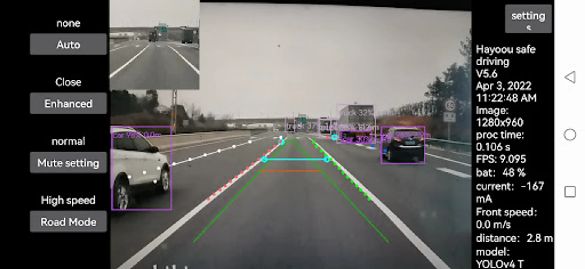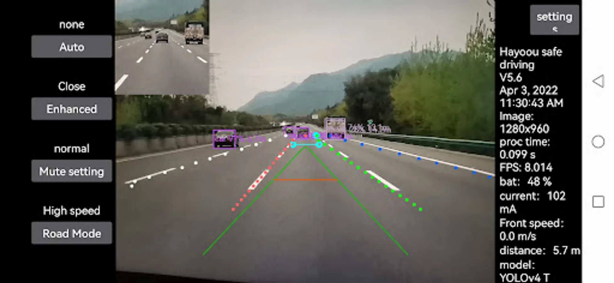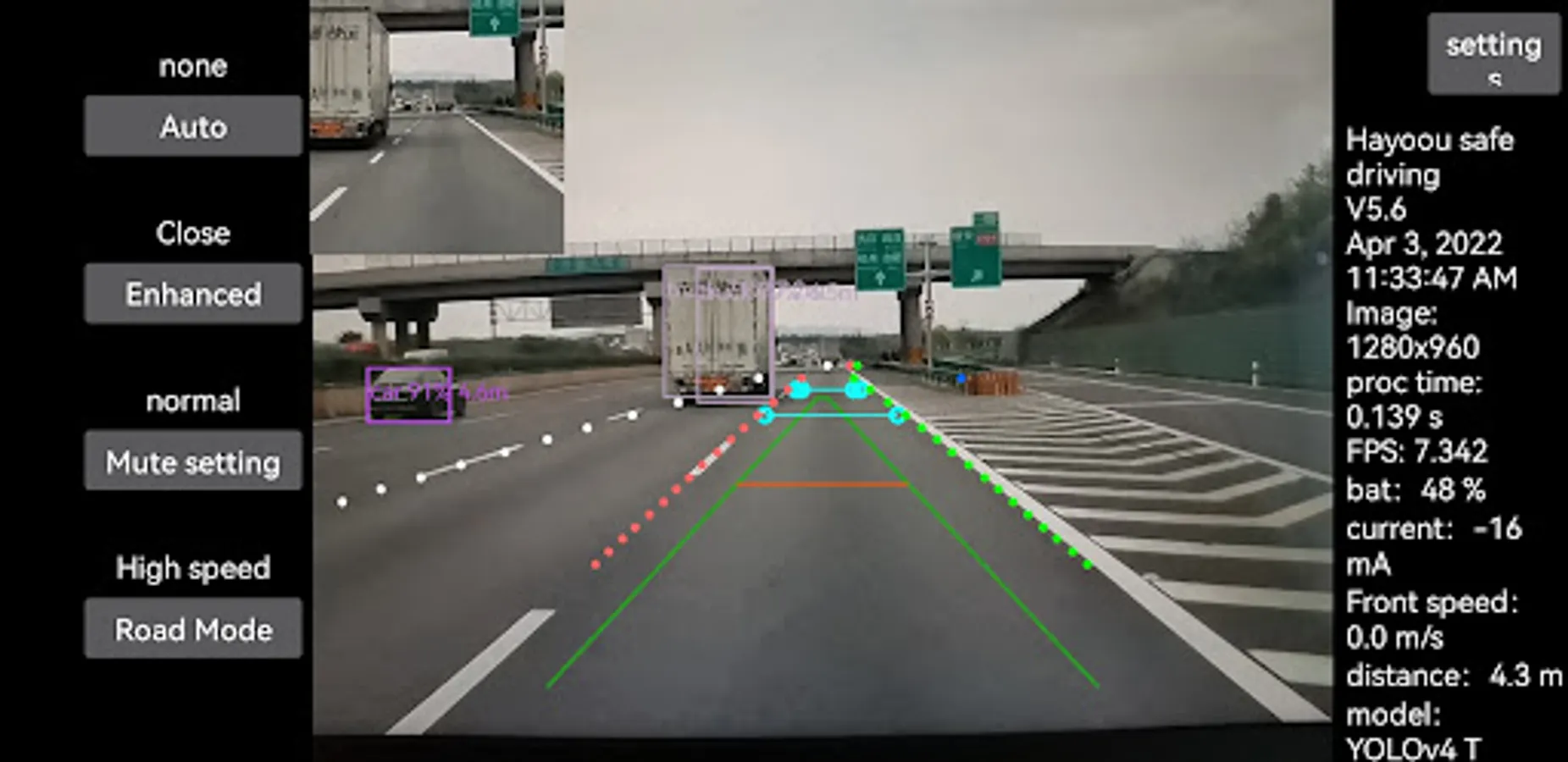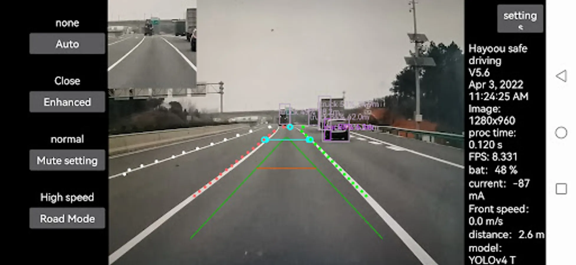 Hayoou Safety Assisted Driving adopts the latest AI algorithm at the end of 2021, and helps drivers to travel safely through the assistance of AI lane recognition and intelligent identification of people and vehicles.