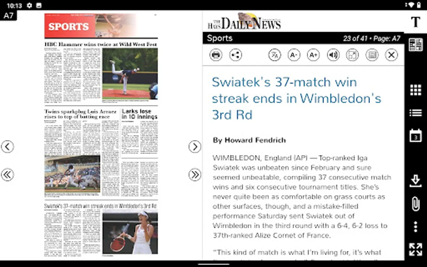 The Hays Daily News eEdition is an exact digital replica of the printed newspaper. Readers of the paper can flip through the pages, read stories, photos, and view ads just they appeared in print.