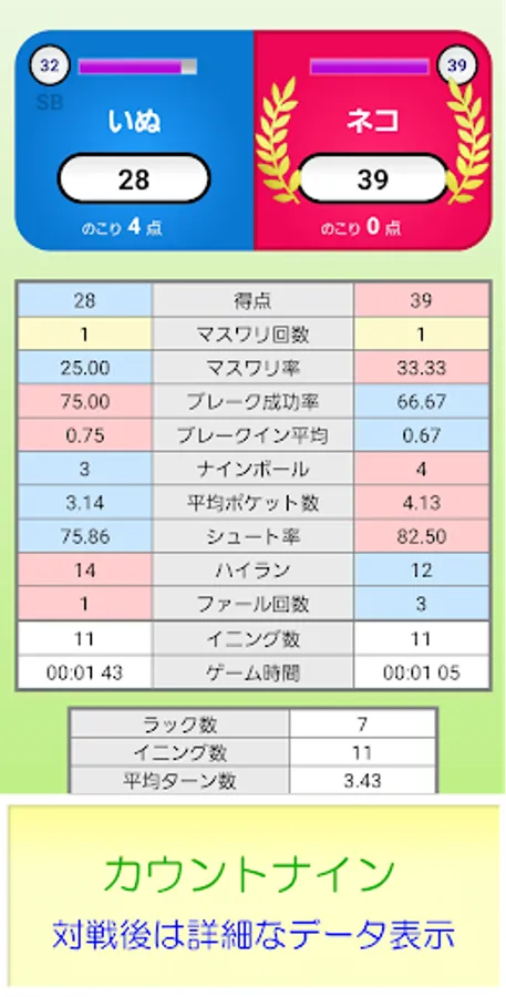 In addition to the score, you can also analyze the mass warrior rate, break success rate, which ball is likely to make a mistake, shoot rate, average number of pockets, high run, etc. in a graph.