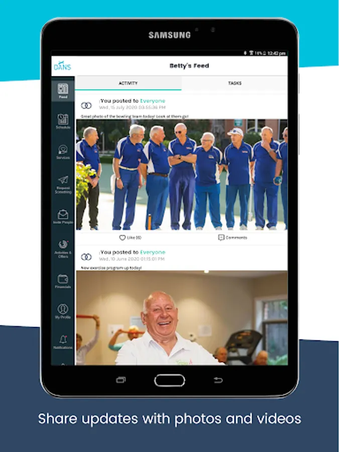 The DANS Inhome Care app allows existing customers of Dubbo Area Nursing Service and their family to communicate and share information and updates with their loved ones and the team