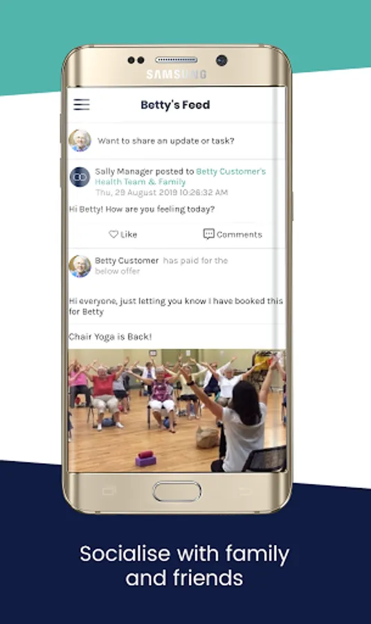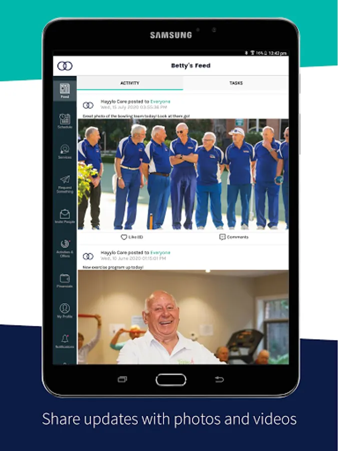 Post pictures, videos, selfies and comments as a great way to keep everyone connected and up to date with you, your loved one or your client.