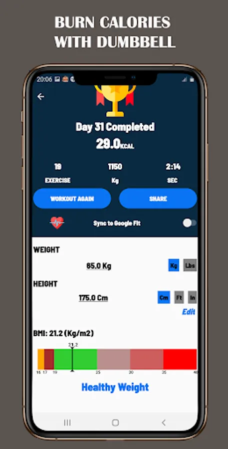 * Automatically record workout progress and sync with Google Fit