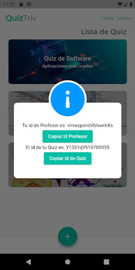 Quiz Triv is an application that manages two profiles, one of a teacher, or better known as a teacher, who can create quizzes and then share them through their teacher ID and the quiz ID itself to their students, making these quizzes personalized