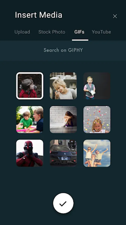 - GIFs from the popular GIPHY