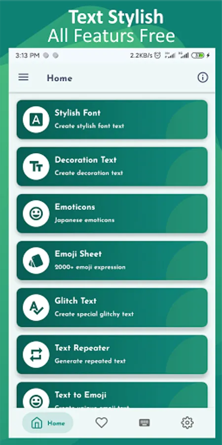 This feature makes it easy for you to use a cool text style keyboard in every application.