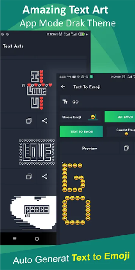 Every text you write will be automatically reconstructed using the emoji arrangement you chose, the emoji will be auto-arranged according to the shape of the text you want.