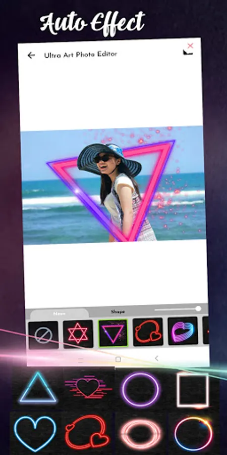 You can add a neon circle effect to the photo automatically, change the biground photo, give a frame and many other interesting features,