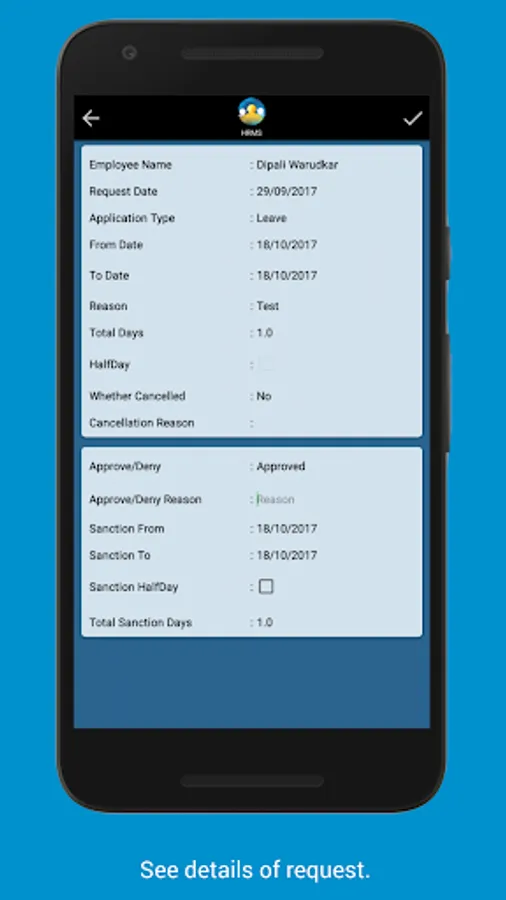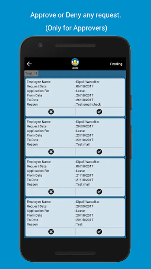 • Leave request / approval / deny / cancellation generates email messages as alerts to respective employee, HOD and to HR to enable them to act upon.