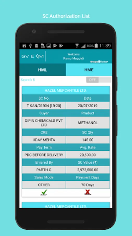 Sales Order punched either by CRE or Sales Co-ordinator needs approval from senior authorities to eradicate any error or negligence or misuse in Sales. This app helps senior personnel to authorize each sales deal before concluding.