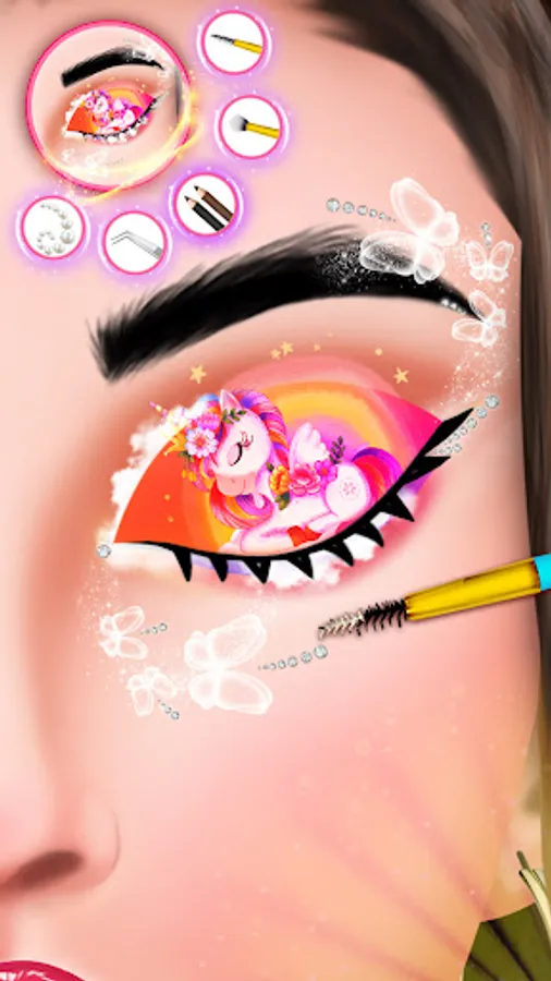 Amaze the fashion world with your hidden talent as a beauty artist. Choose the best eyebrow and eyelash style from the wardrobe of beauty salons and give her a glittery eye look with your professional makeup artist. These fashion makeover games test your color selection skills and turn you into a professional beauty artist in real life. This unicorn beauty salon spa game has lots of eyebrow styling, eye lenses, and lipstick for the ultimate adventure of those who love to play makeup games and princess eye decoration games.