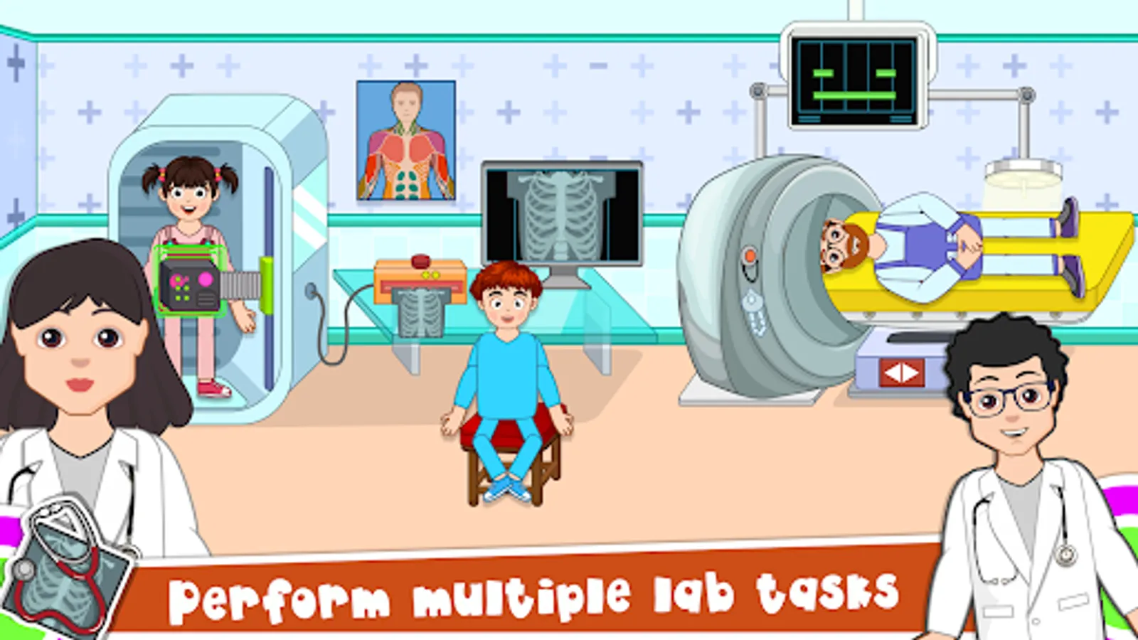 Patients are coming to the city hospital clinic, injured or suffering from various diseases, and they need your diagnoses like a pro hospital doctor of pretend town hospital games. Turn your city life into a toca doctor, run your own clinic and hospital, and cure different kinds of patients with medicine along with your assistant nurse in pretend play games. Perform multiple lab tests like a pro daycare mommy in this pretend town hospital game for girls. Conduct medical reports after performing MRI, CT scans, and X-ray tests of the patients.