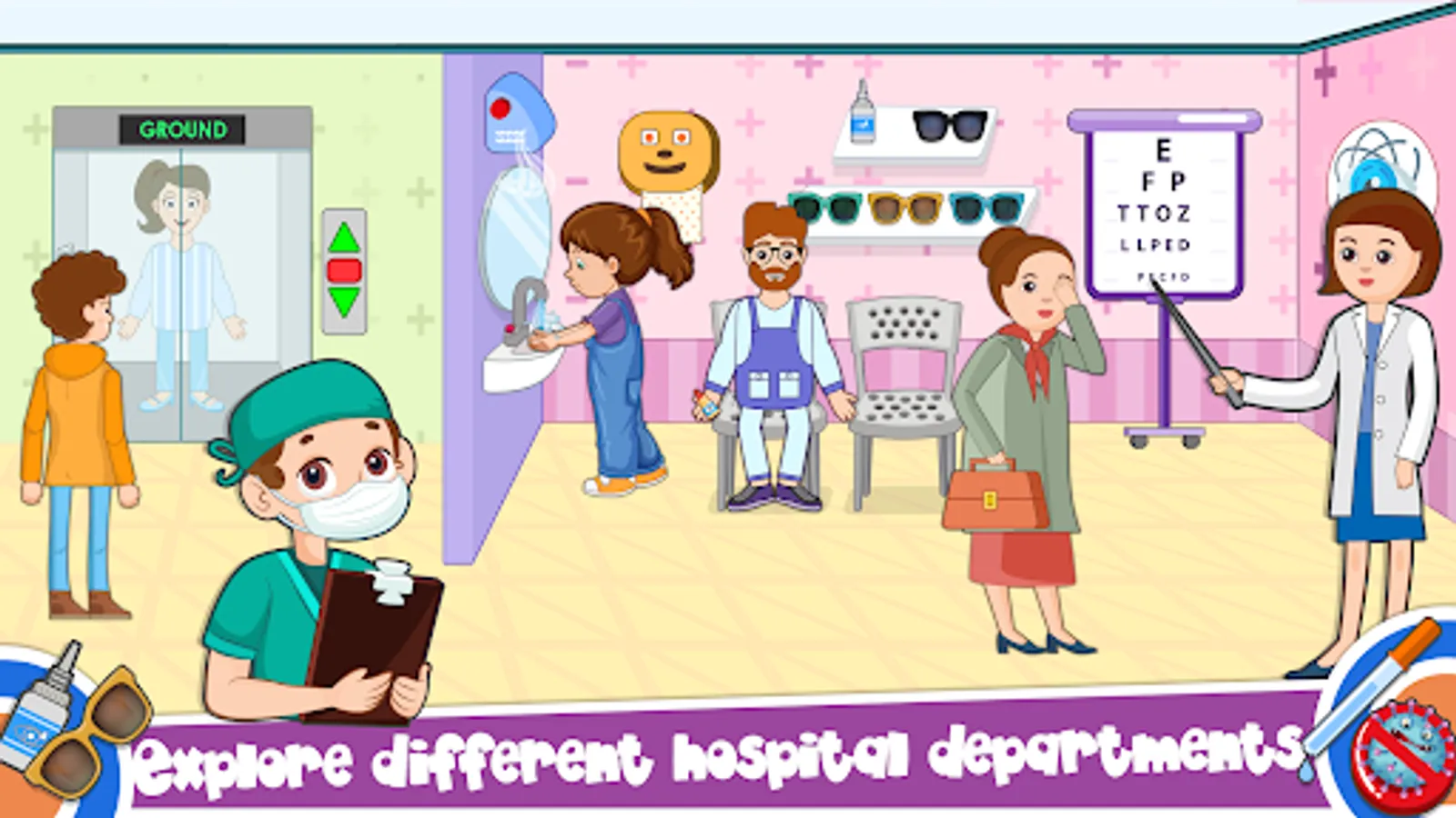 My pretend city hospital life is a doctor clinic roleplaying game where you can perform medical activities in a virtual town hospital and enjoy fun stuff and buy snacks, medicine, and dress up nursing staff and cure the patients in my hospital of pretend play games. This city hospital is an imaginative & open-ended play home game with tons of role-play activities where you can play as a town doctor, nurse, patient, and other medical staff members of city hospital of roleplaying games.