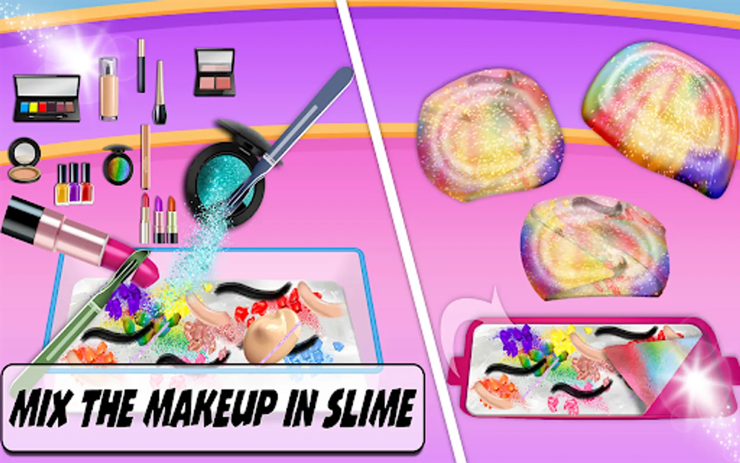 - Create your own magic slime makeup kit & create different shapes in satisfying games for girls.