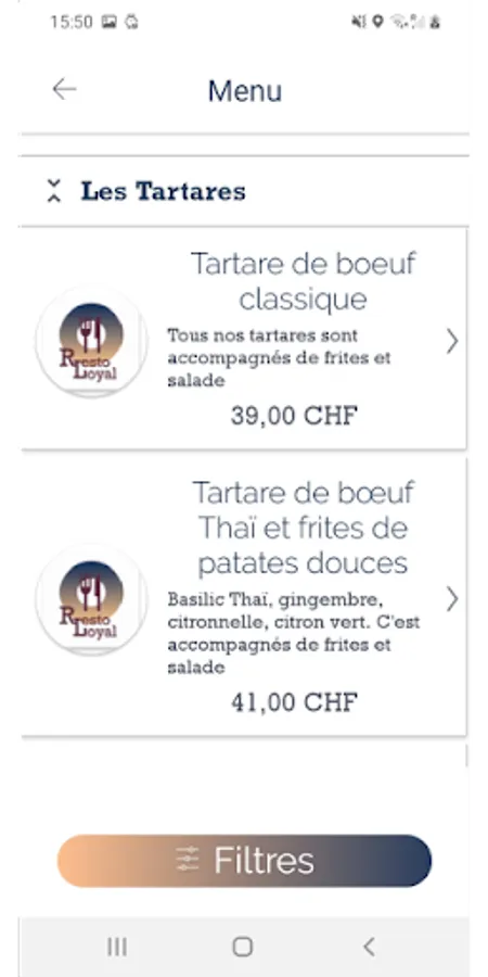 Resto Loyal is an application designed for restaurant customers who want to check the latest menu, book a table and call server to order or pay. It was developed for the Loyal group including Cipriano Wine & Ham and Restaurant Nomade, located in Flon, Lausanne, Switzerland. The application is available for Android and Ios and it is translated into French, English and German. You can download it directly from mobile platforms or you can scan the QR code on each table in both restaurants. The registration process is very simple, all you need to do is fill in the fields with your name, phone number, password and e-mail address where you will receive a confirmation code to login and benefit from the functions of the application.