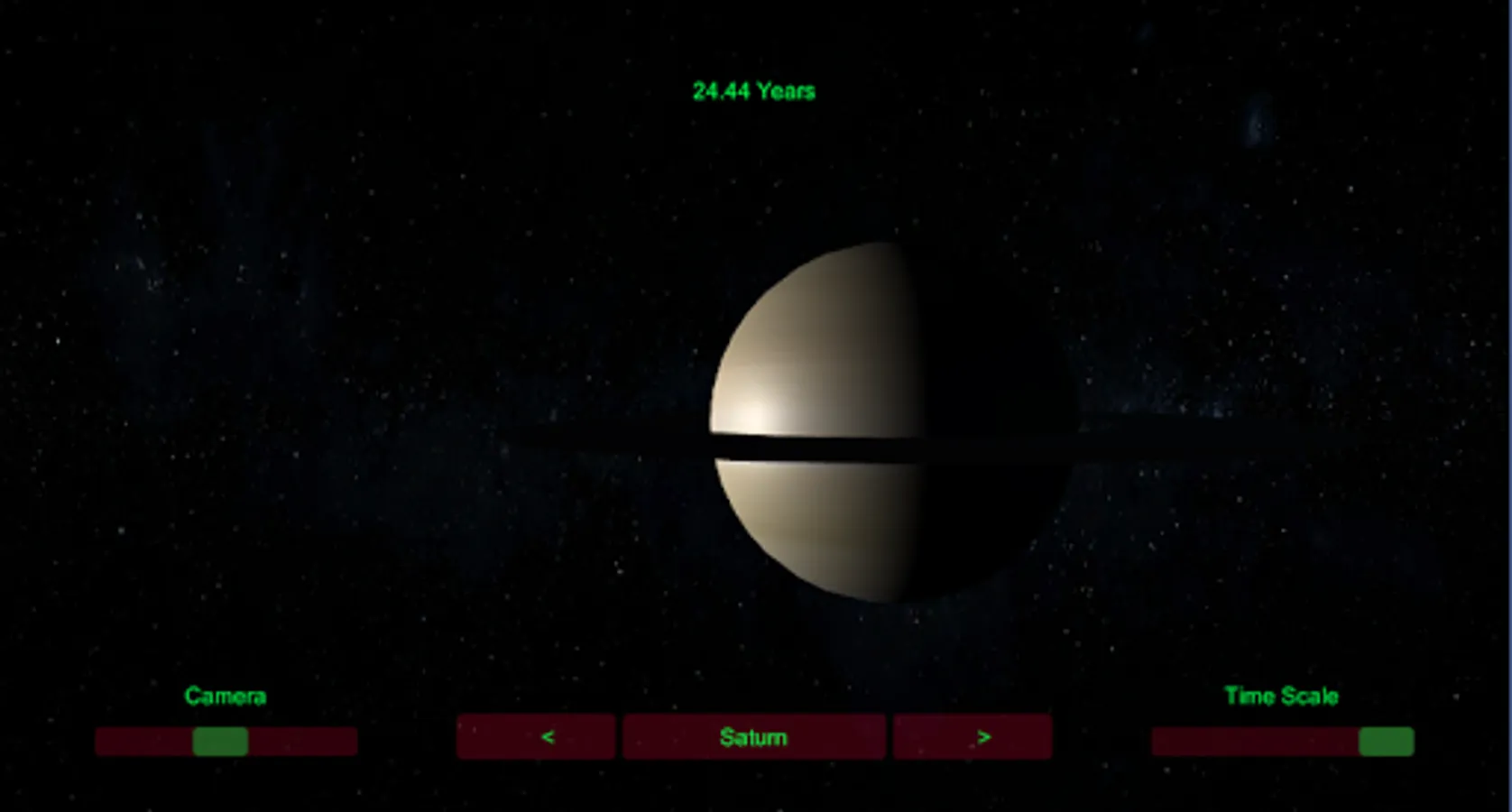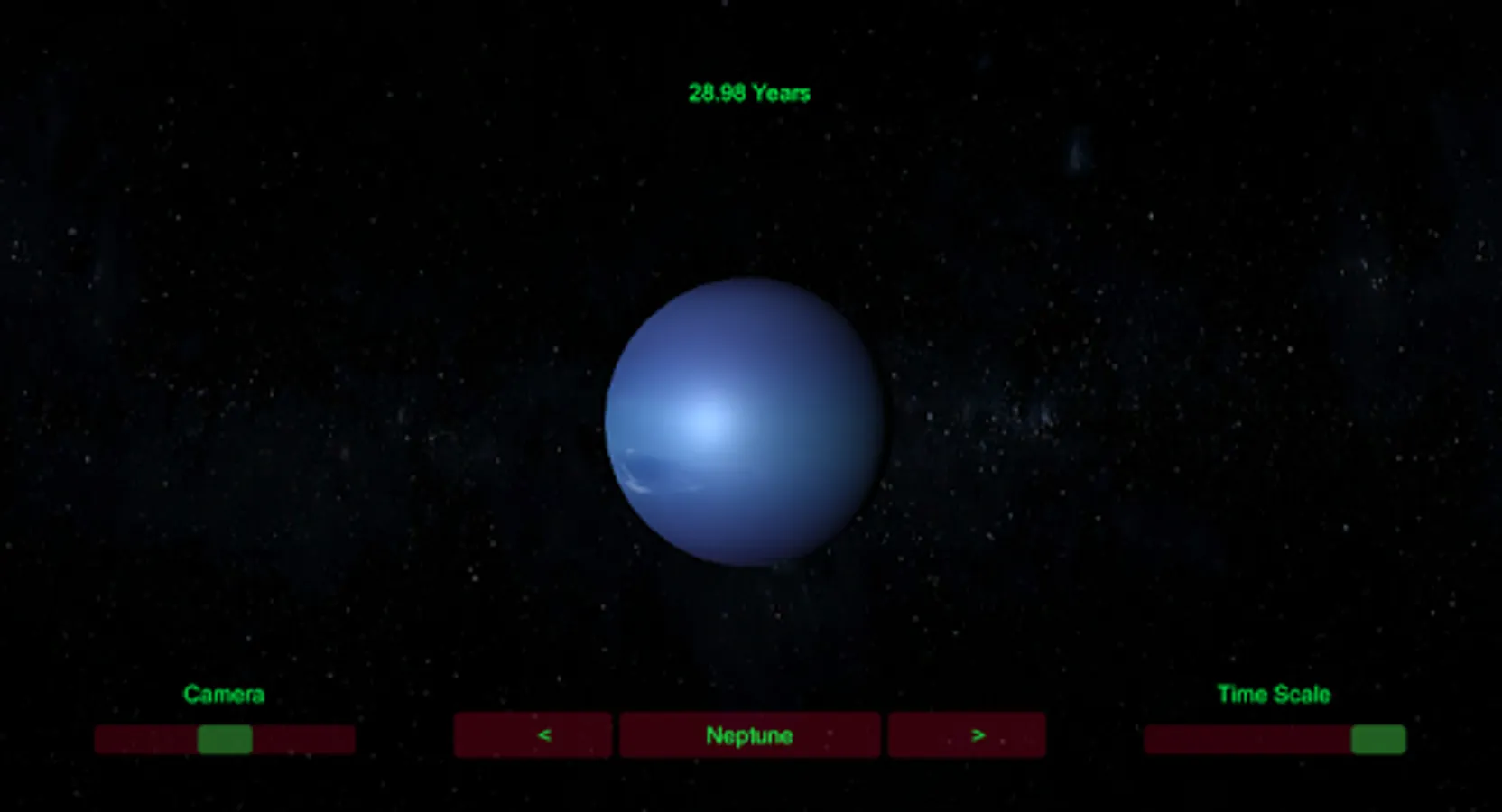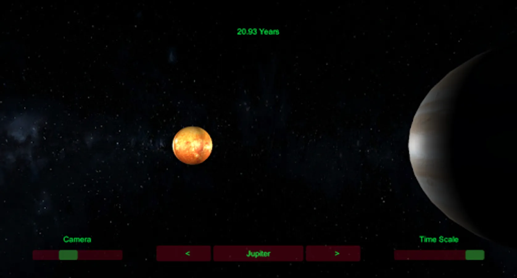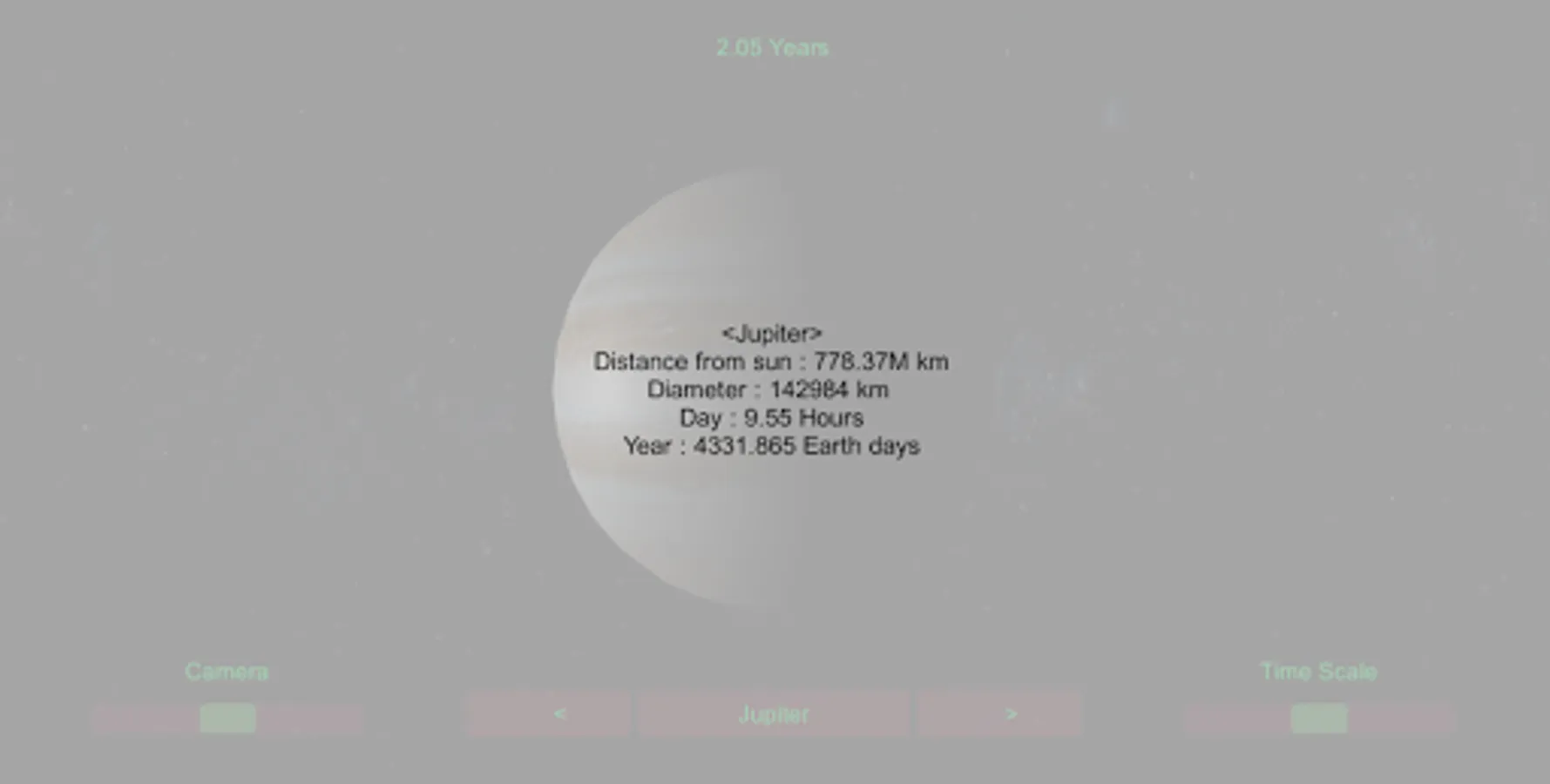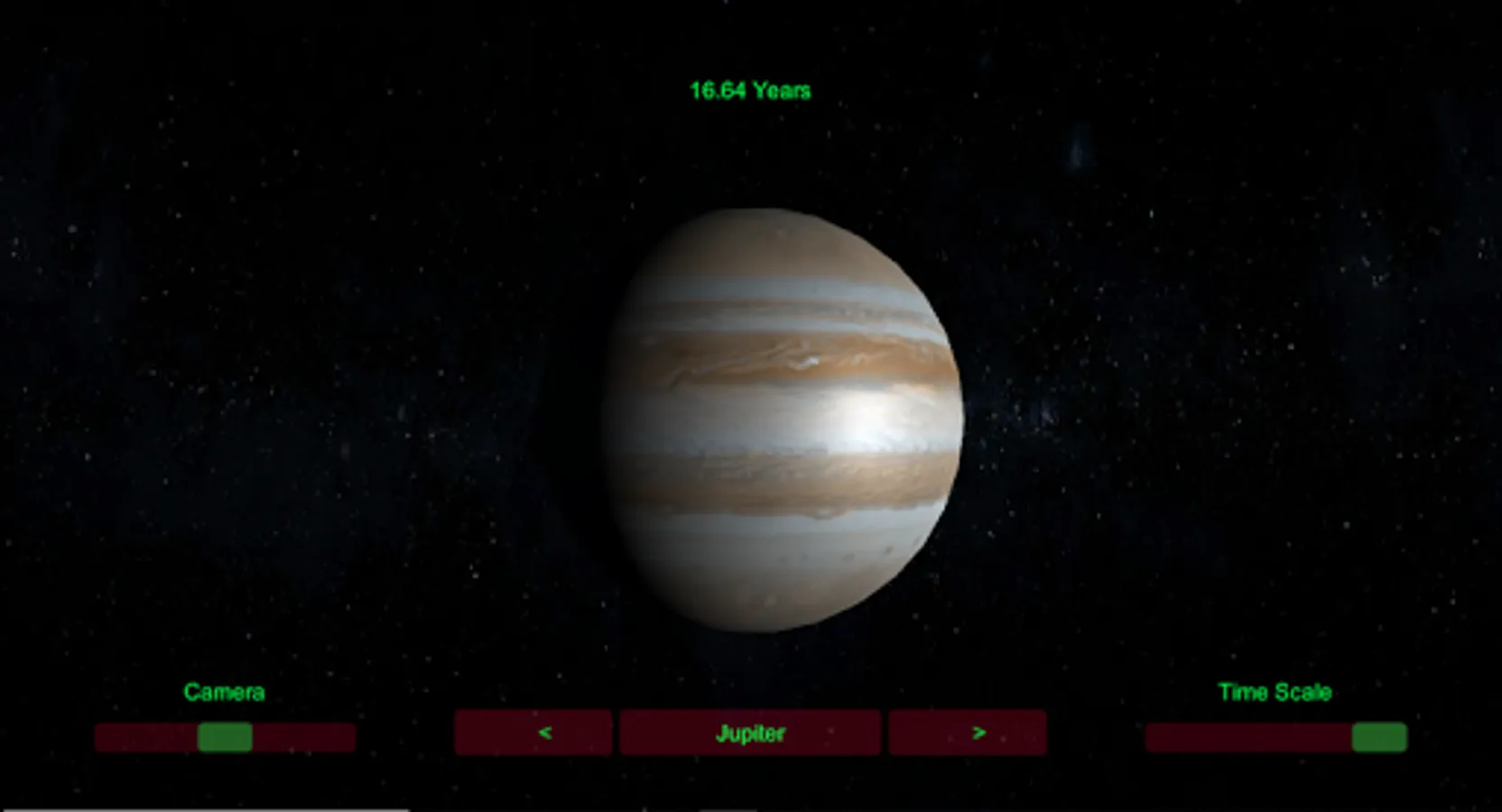You can adjust the camera view , time scale , transition between planets , etc ..