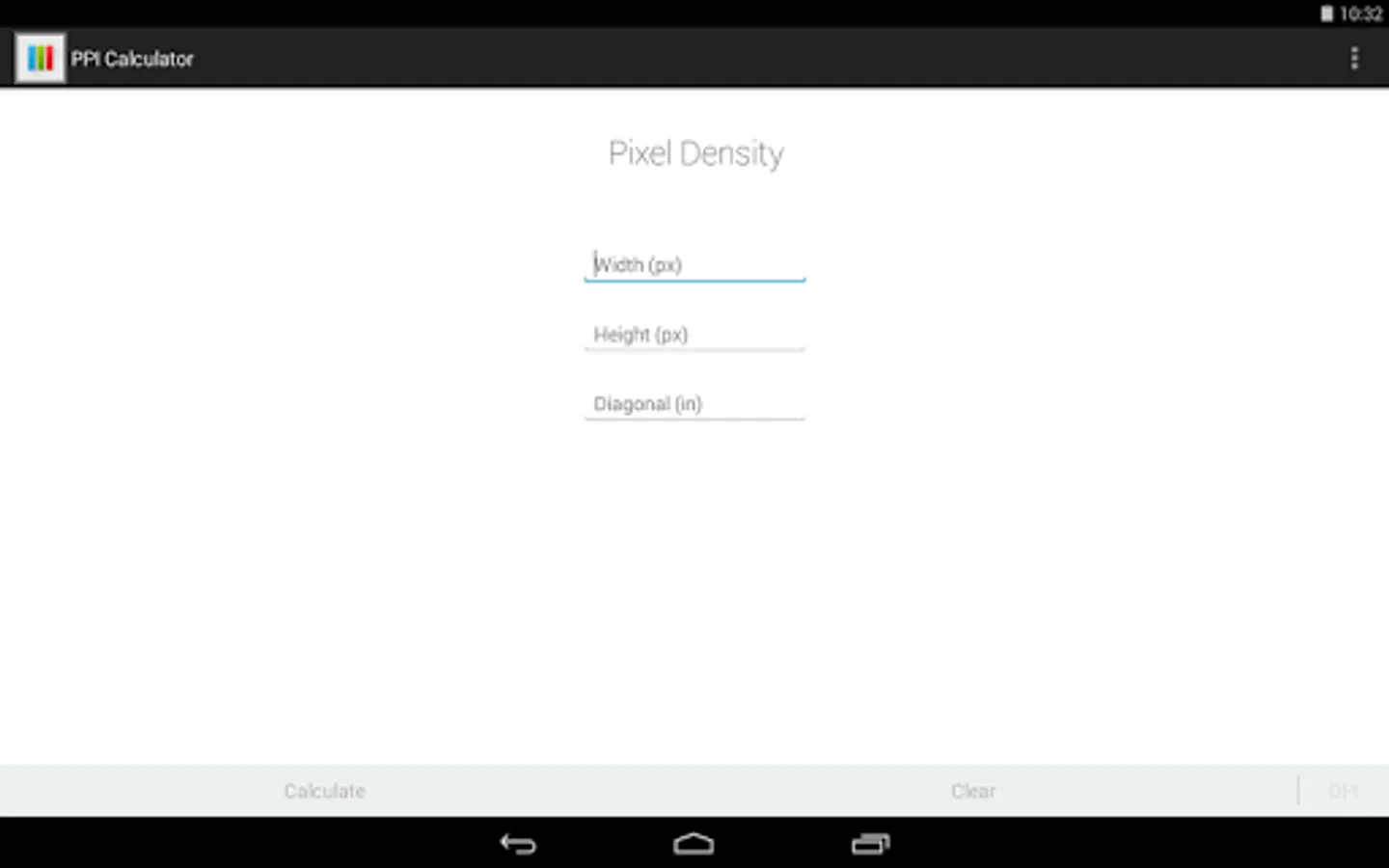 Clean, simple-to-use, and straightforward. A useful tool to quickly find the PPI (Pixels-per-Inch) of any display by simply entering the necessary info. Its file size is very small making it very easy to download and install.