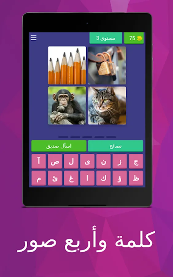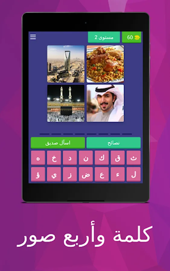 Learn and enjoy the unique and famous puzzle game “One Word and Four Pics” 😍 developed especially for fans of intelligence and entertainment games 🧠 This free game 🆓 provides you with an entertaining and useful experience at the same time. The game depends on providing four images associated with a specific word that you must claim to know well and guess based on those images 🖼️🔍 You will test your general knowledge and speed of thinking in the face of various challenges.