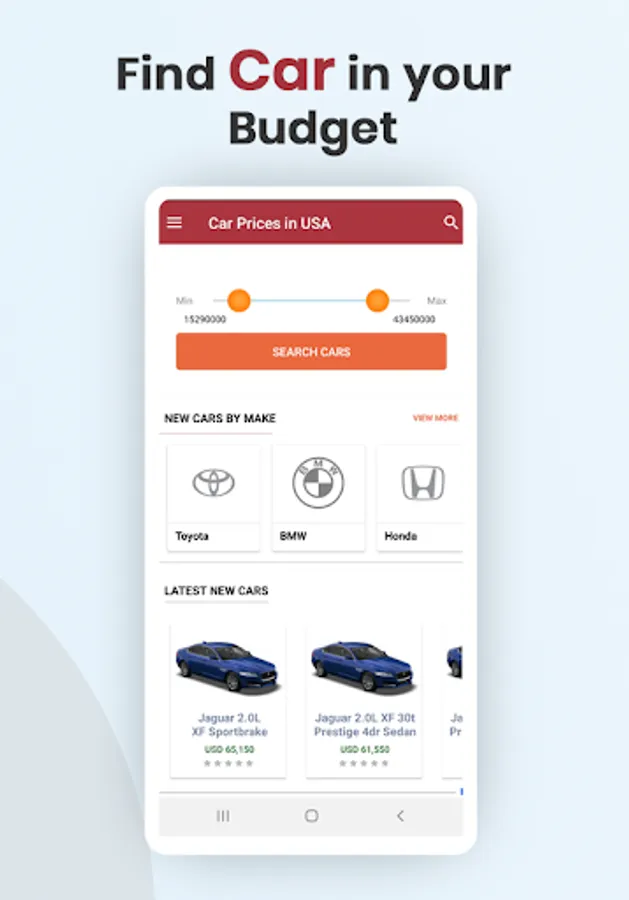Car Prices in USA Application is for latest cars prices in USA. Car Prices in USA application helps you to find new cars of top brands near you with their specifications and features. Price is considered as the main factor for deciding on which car is right for you.