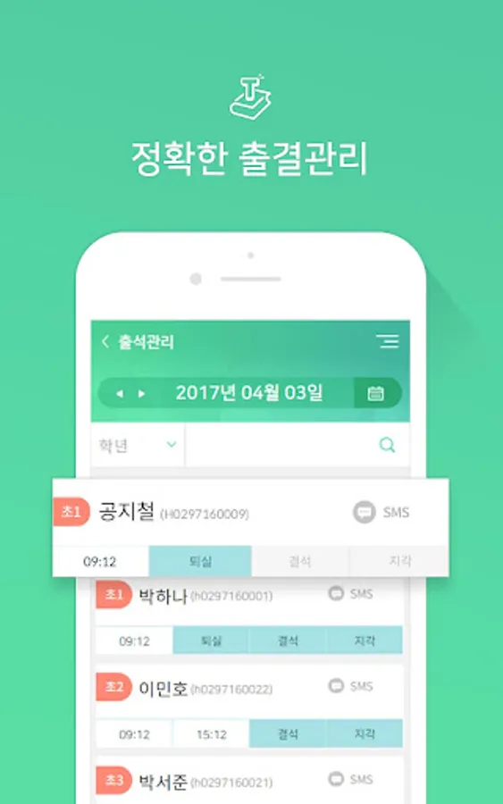 휴대폰으로 학생들을 손쉽게 관리하세요.