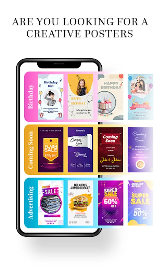 👉 Now-a-days promoting business has become easy through digital process. With no time, poster maker helps you to create all sorts of posts and banners easily without any hassle. Whether you are an entrepreneur or work in partnership; flyers, banners, product launching promotions, business card, invitation card, greetings or offers, etc. are some of the basic graphics you would require promoting your business be it at small level, medium level or corporate level.