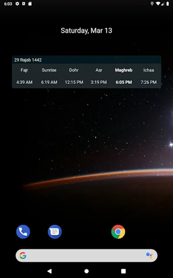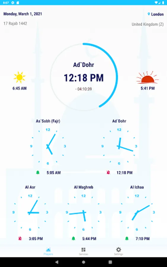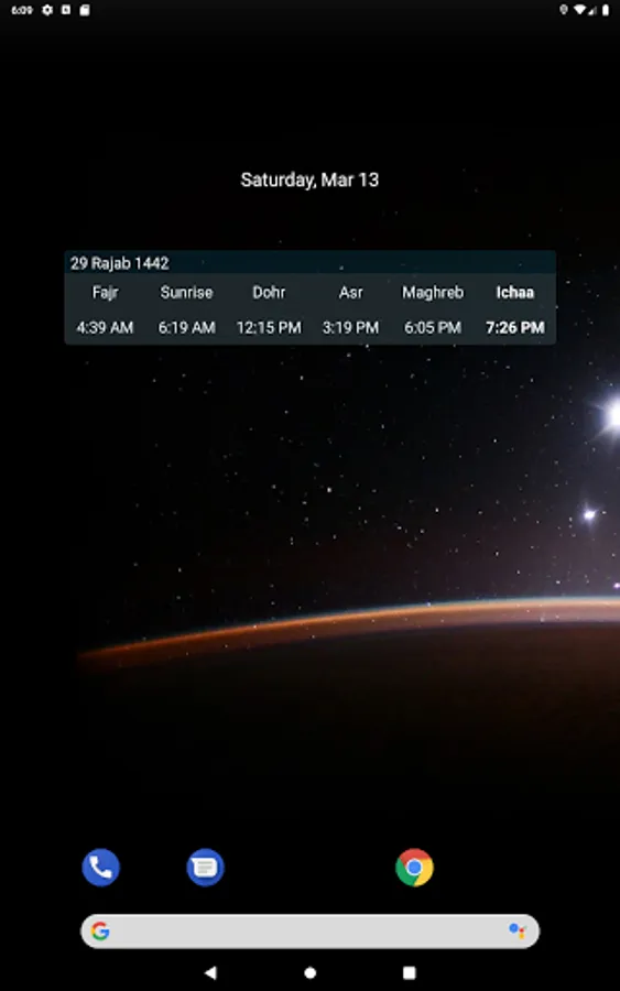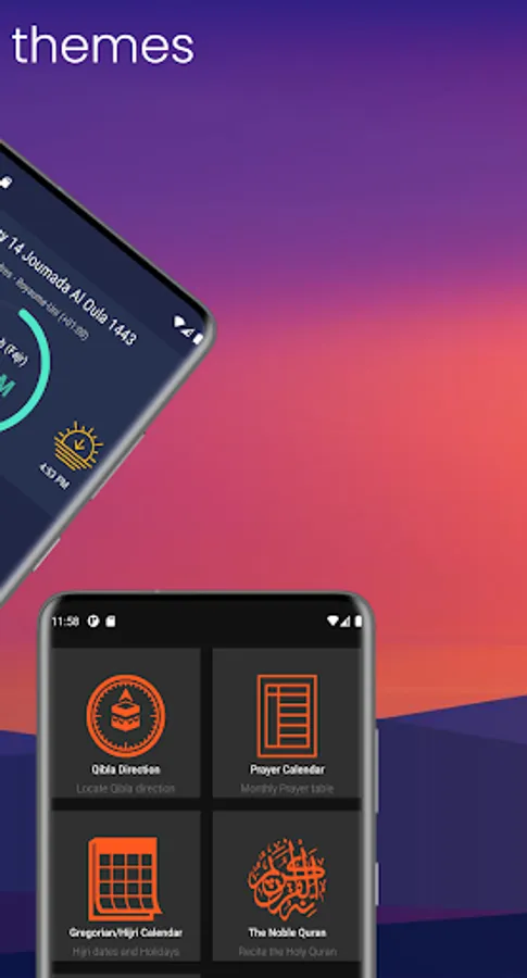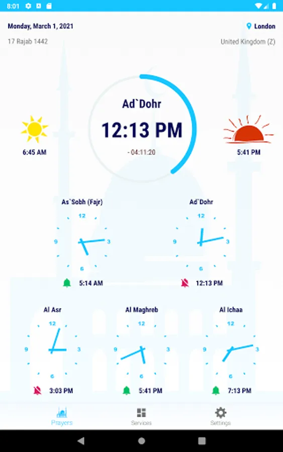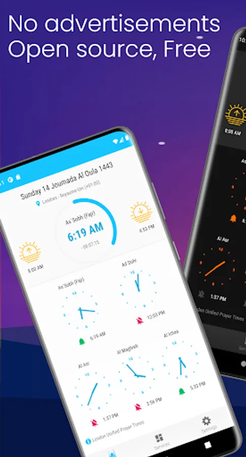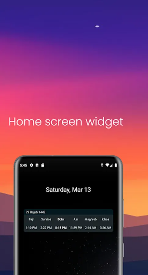 - Notification and Adhan reads for prayer times.