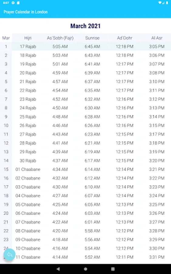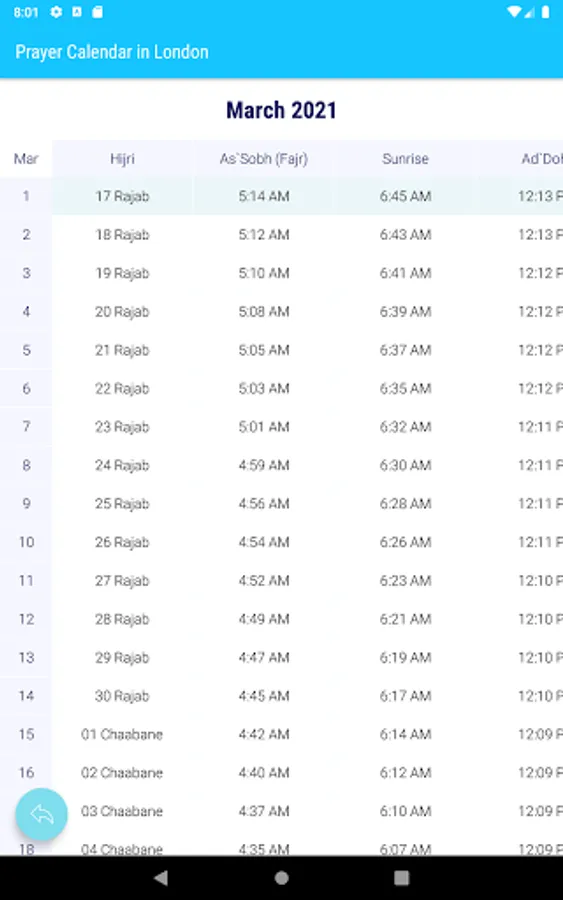 - Month Prayer times table.