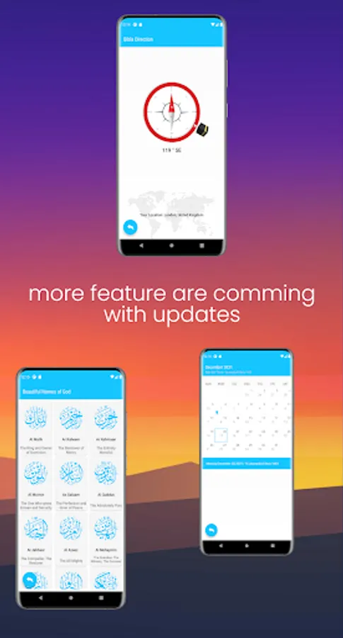 - Qibla direction compass.