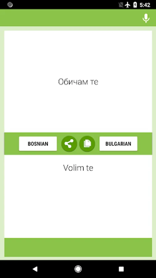 Bosanski - Bugarski Aplikacija prevođenja - besplatna i jednostavna za korištenje. Tekst i slova možete prevesti sa Bosanski na Bugarski i od Bugarski na Bosanski nazad. Aplikaciju prevedite pogodno za korištenje s chatovima, messengerima i društvenim mrežama. Možete koristiti ovaj pretvarač na poslu, školu, datiraju, putovati ili tokom službenih putovanja kako biste poboljšali svoj majstor na ova dva jezika, također možete koristiti ovo kao Bosanski - Bugarski i Bugarski - Bosanski konverter, tumač, rečnik. Preuzmite aplikaciju za prevođenje i počnite da poboljšate svoje jezičke veštine sada!