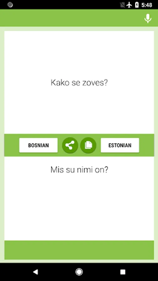 Bosanski - Estonski Aplikacija prevođenja - besplatna i jednostavna za korištenje. Tekst i slova možete prevesti sa Bosanski na Estonski i od Estonski na Bosanski nazad. Aplikaciju prevedite pogodno za korištenje s chatovima, messengerima i društvenim mrežama. Možete koristiti ovaj pretvarač na poslu, školu, datiraju, putovati ili tokom službenih putovanja kako biste poboljšali svoj majstor na ova dva jezika, također možete koristiti ovo kao Bosanski - Estonski i Estonski - Bosanski konverter, tumač, rečnik. Preuzmite aplikaciju za prevođenje i počnite da poboljšate svoje jezičke veštine sada!