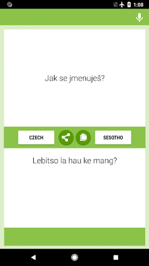 App Translator ea Sesotho-Sesotho - e sa lefelloe ebile e bonolo. O ka fetolela mangolo le mangolo ho tsoa ho Czech ho ea Sesotho le ho tloha Sesotho ho ea fihla Czech. U ka sebelisa converter ena sekolong, mosebetsing, ho intša, ha u ntse u tsamaea kapa nakong ea maeto a khoebo ho ntlafatsa katleho ea lipuo tsena tse peli, hape u ka sebelisa sena e le mofetoleli oa Sesotho-Czech le Sesotho-Sesotho, mofetoleli, dikishinari.
