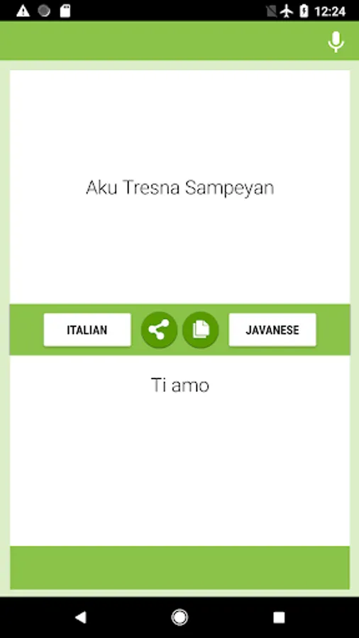 Aplikasi Basa Basa Jawa-Basa Jawa - gratis lan gampang. Sampeyan bisa nerjemahake teks lan aksara saka Italia nganti Jawa lan saka basa Jawa menyang Italia maneh. Sampeyan bisa nggunakake konverter iki ing sekolah, karya, dating, nalika lelungan utawa lelungan bisnis kanggo nambah masterly saka loro basa iki, uga sampeyan bisa nggunakake iki minangka converter, interpreter, kamus basa Jawa-Italia lan Italia.