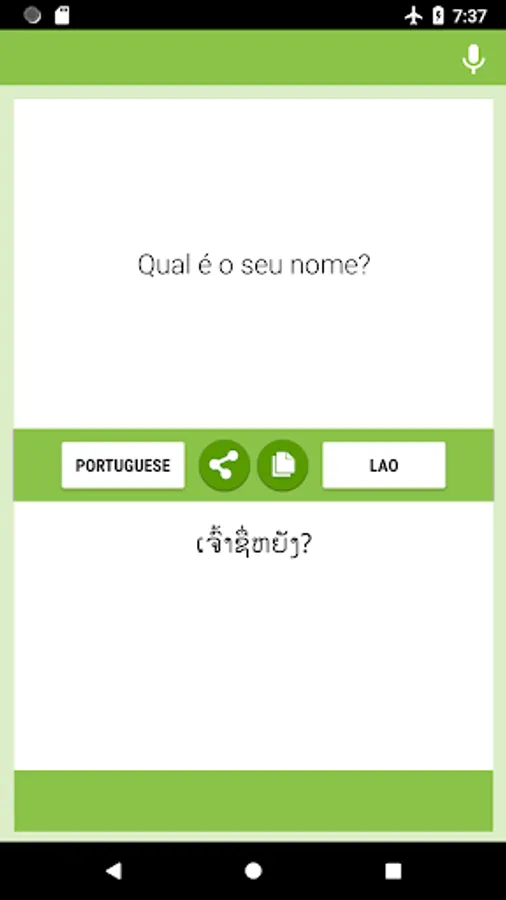 Portuguese-Lao Translator app - free and easy to use. You can translate text and letters from Portuguese to Lao and from Lao to Portuguese back. The translate app conveniently to use with messengers, chats and social networks.You can use this converter at school, work, dating, while travelling or during business trips to improve your masterly of these two languages, also you can use this as Lao-Portuguese and Portuguese-Lao converter, interpreter, dictionary. Download Translation App and begin improve your language skills now!