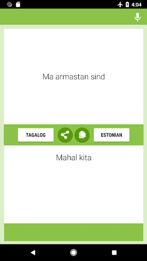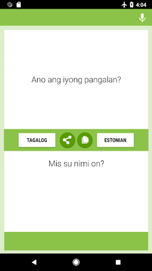 Tagalog-Estonian Translator app - free and easy to use. You can translate text and letters from Tagalog to Estonian and from Estonian to Tagalog back. The translate app conveniently to use with messengers, chats and social networks.You can use this converter at school, work, dating, while travelling or during business trips to improve your masterly of these two languages, also you can use this as Estonian-Tagalog and Tagalog-Estonian converter, interpreter, dictionary. Download Translation App and begin improve your language skills now!