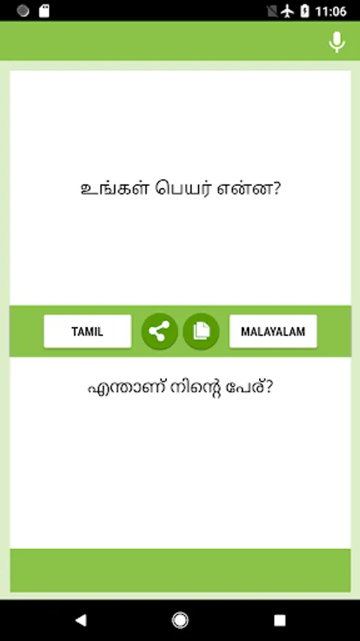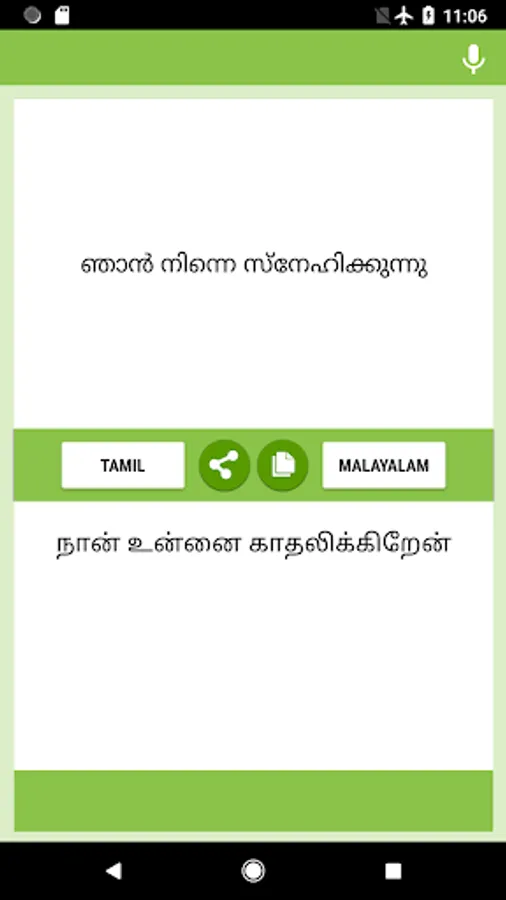 Tamil-Malayalam Translator app - free and easy to use. You can translate text and letters from Tamil to Malayalam and from Malayalam to Tamil back. The translate app conveniently to use with messengers, chats and social networks.You can use this converter at school, work, dating, while travelling or during business trips to improve your masterly of these two languages, also you can use this as Malayalam-Tamil and Tamil-Malayalam converter, interpreter, dictionary. Download Translation App and begin improve your language skills now!