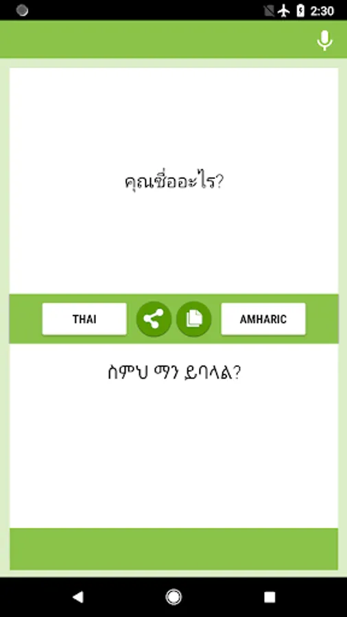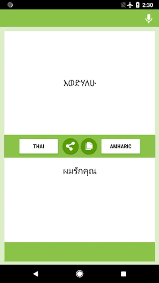 Thai-Amharic Translator app - free and easy to use. You can translate text and letters from Thai to Amharic and from Amharic to Thai back. The translate app conveniently to use with messengers, chats and social networks.You can use this converter at school, work, dating, while travelling or during business trips to improve your masterly of these two languages, also you can use this as Amharic-Thai and Thai-Amharic converter, interpreter, dictionary. Download Translation App and begin improve your language skills now!