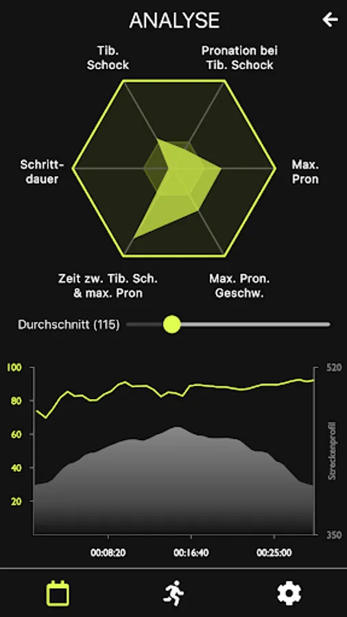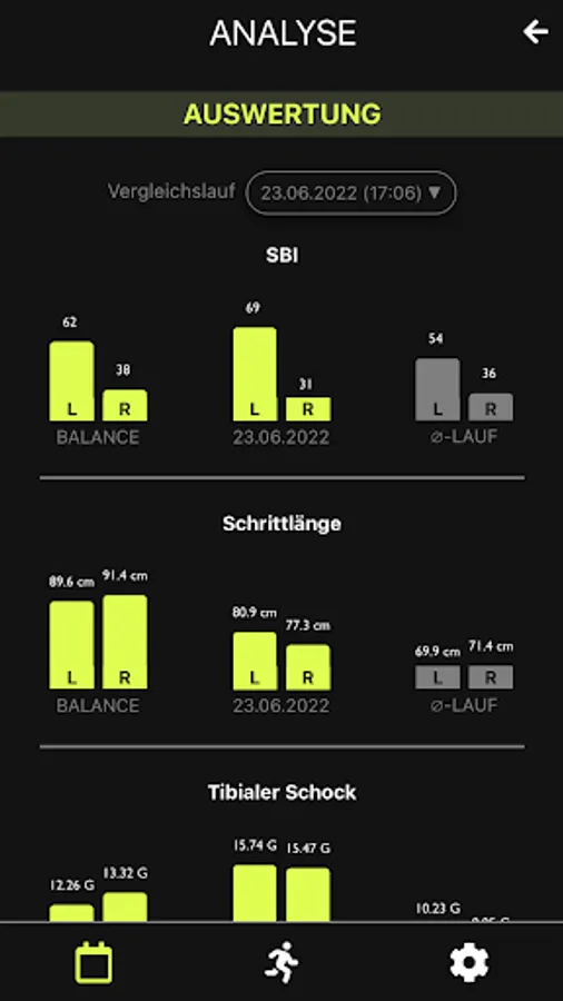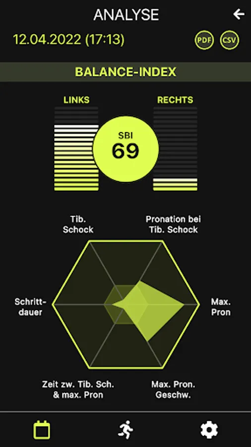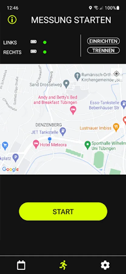 That is new! SensoRun measures movement sequences and loads based on shin rotation directly on the body! This new method was co-developed by the sports medicine department in Tübingen and enables absolutely precise measurement data. The sensor is attached to the tibia with a tibia band and sends 256 measurements per second to the mobile device via Bluetooth. There the data is analyzed in real time and processed graphically so that the runner or running expert receives feedback while running. The run data is available to the runner in detail in his app after the run.