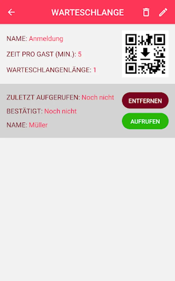 The registration keeps track of the waiting people at any time and can call up the waiting people with one click. To simplify prioritization, questions can optionally be asked via the app when registering.