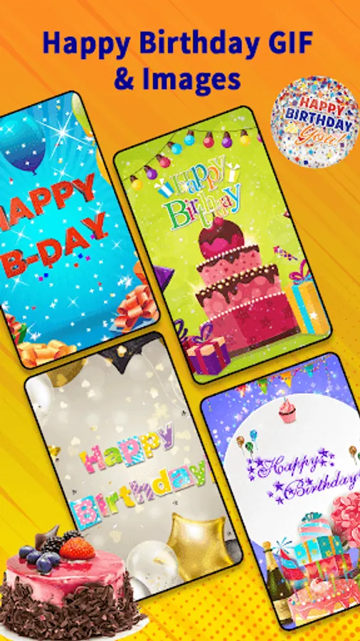 Create and share Happy Birthday Wishes GIF via various social media apps on your phone.