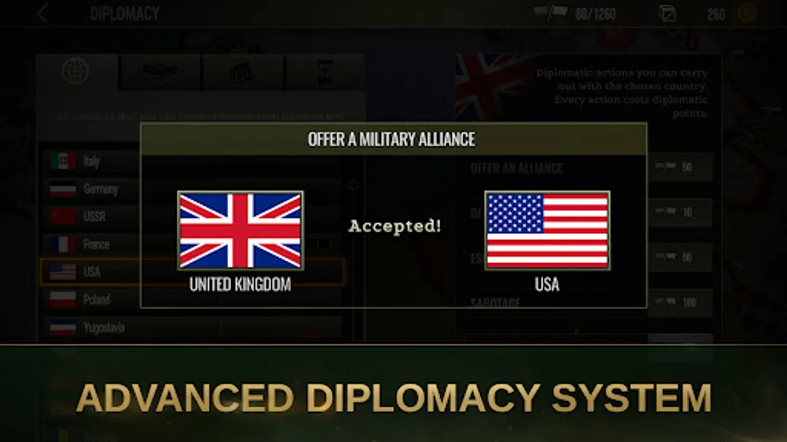 - A deep strategic component: World War 2 is easily won when you're Britain, but try pulling it off as Portugal or Austria! Muster all of your strategic genius to assess the risks and complement your army's strength with diplomacy, science, and economy to achieve supremacy.