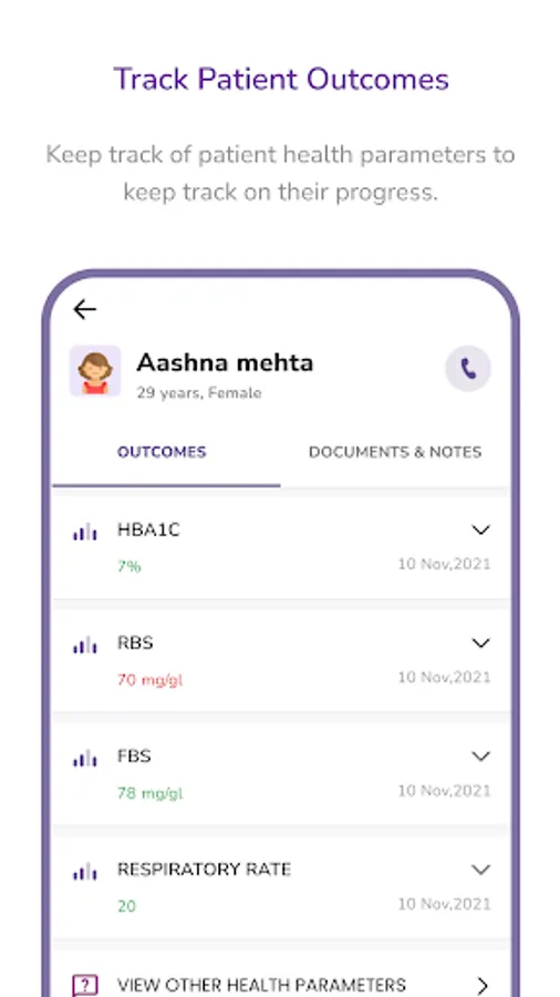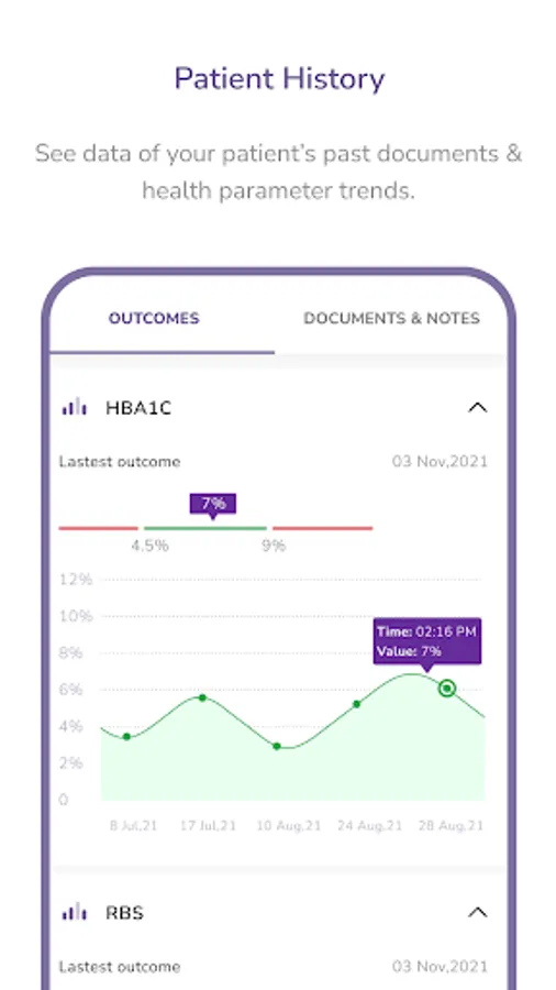 - View a comprehensive history of patient health parameters in an easy to review graphical format