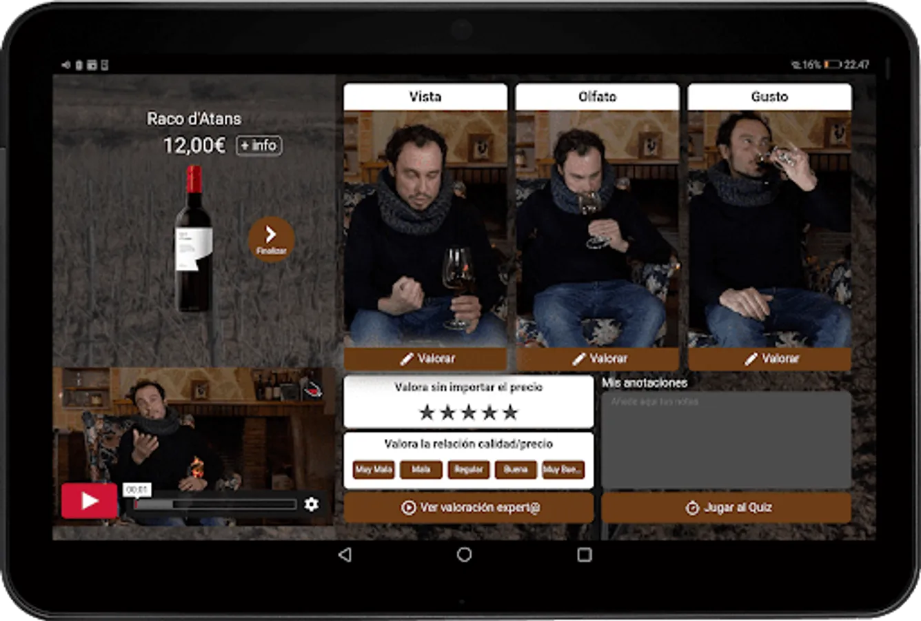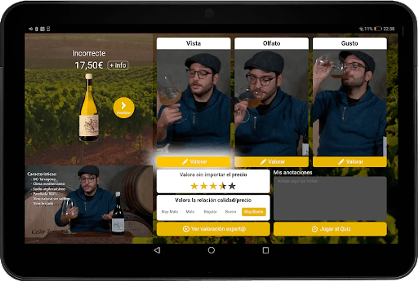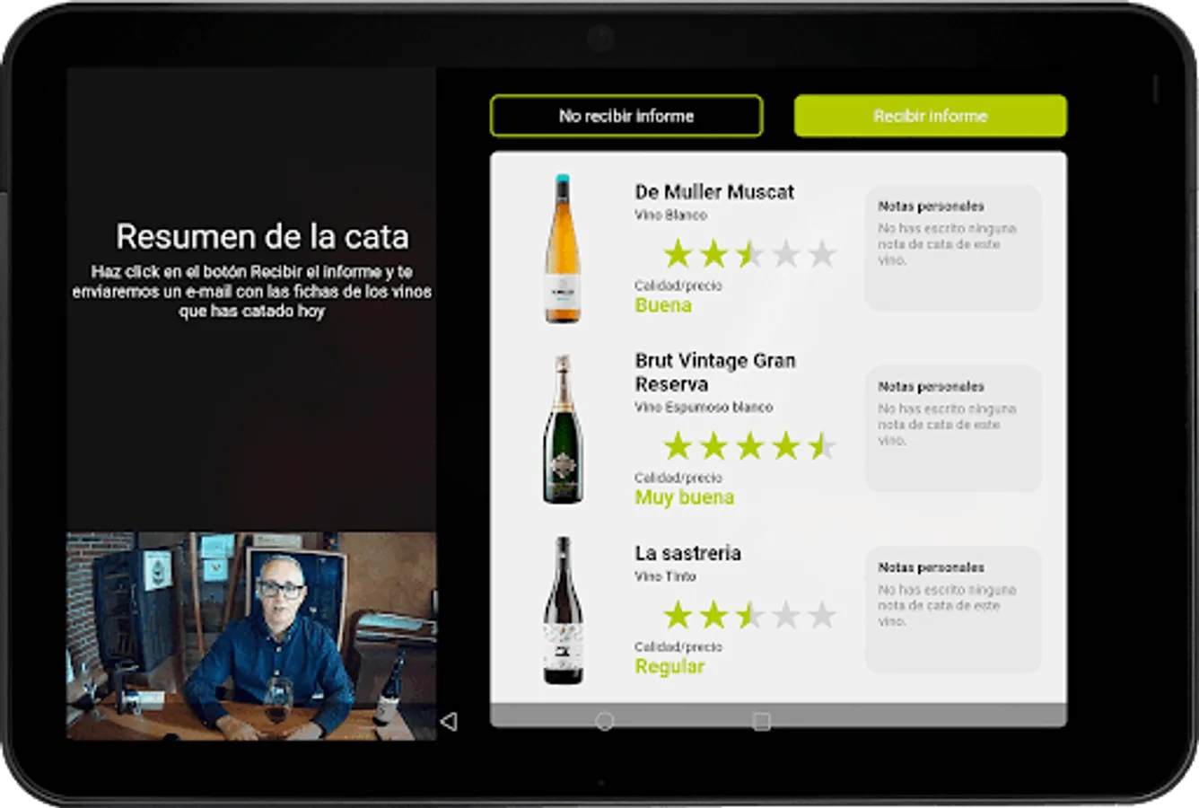 The operation is very simple, you must download the tasting sheets beforehand, and then execute and store all the data even if you do not have an internet connection during the event. Later, when the tablet connects to the internet, all the data will be sent so that it can be analyzed comfortably from the web editor.