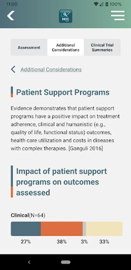 HCCcare is an educational resource tool that was developed to support Canadian medical oncologists in selecting the most appropriate first line systemic therapy for patients with hepatocellular carcinoma (HCC), based on current drug approvals. With HCCcare, clinicians can review systemic treatment considerations, treatment logistics, patient support programs, and clinical trial summaries all in one place. The content for HCCcare was developed by a Scientific Planning Committee of key opinion leaders and clinicians in the field of HCC.