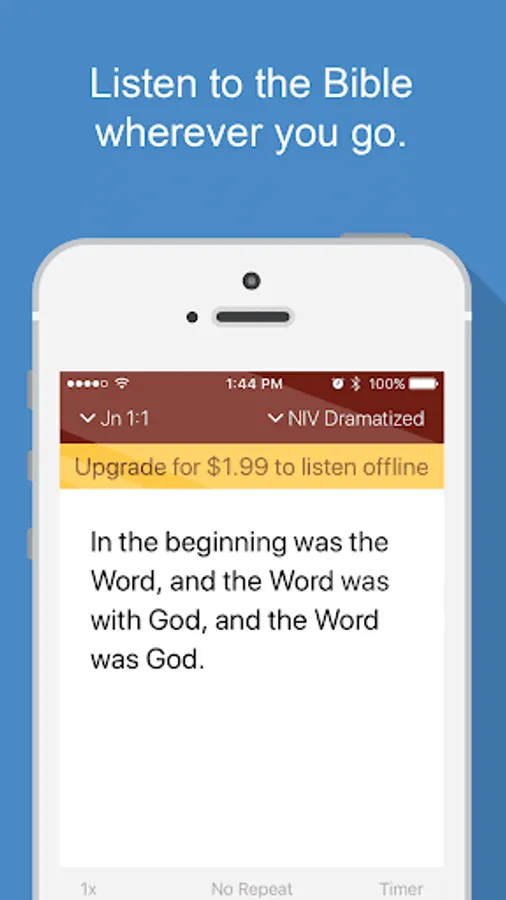 • Experience the Bible uninterrupted—enjoy listening to God's Word without audio or banner ads.
