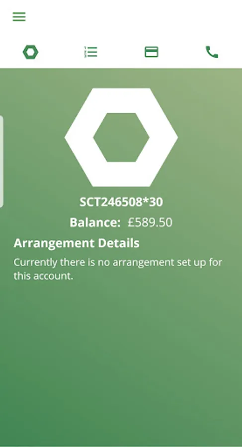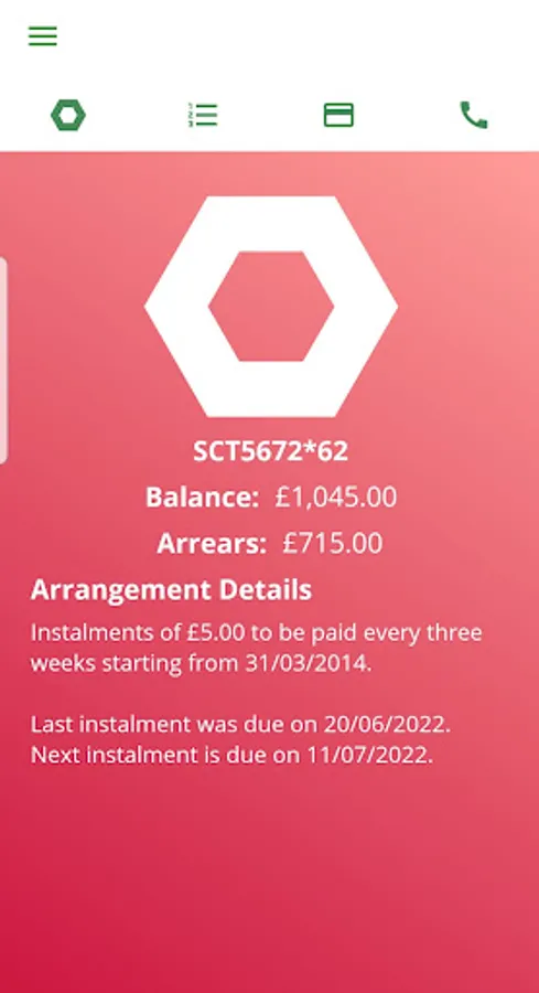 The app shows the amount owed, what has been paid (including date and amount), payment arrangement details and what is outstanding, with user-friendly colour-coding: