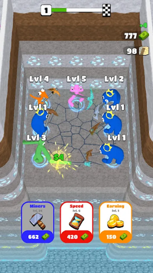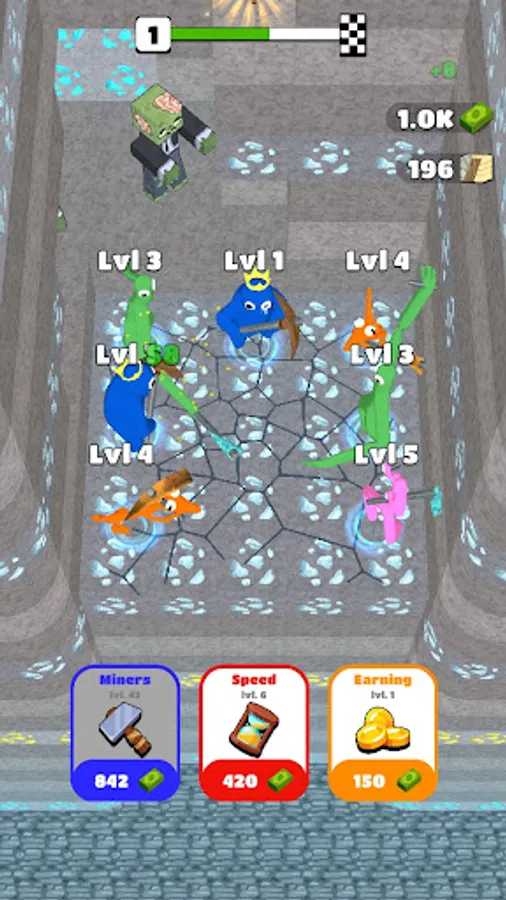 Hold Pickaxe, become a Pick crafter to mine gold in idle games. For fans of endless fun. tap the boredom away by digging for gold, diamonds, amethyst, and more in Mining games! Merge Miners to dig deeper, faster to mine gold and earn profits in idle clicker money games. Amazing rainbow friends craft games for people searching for idle clicker mining games.