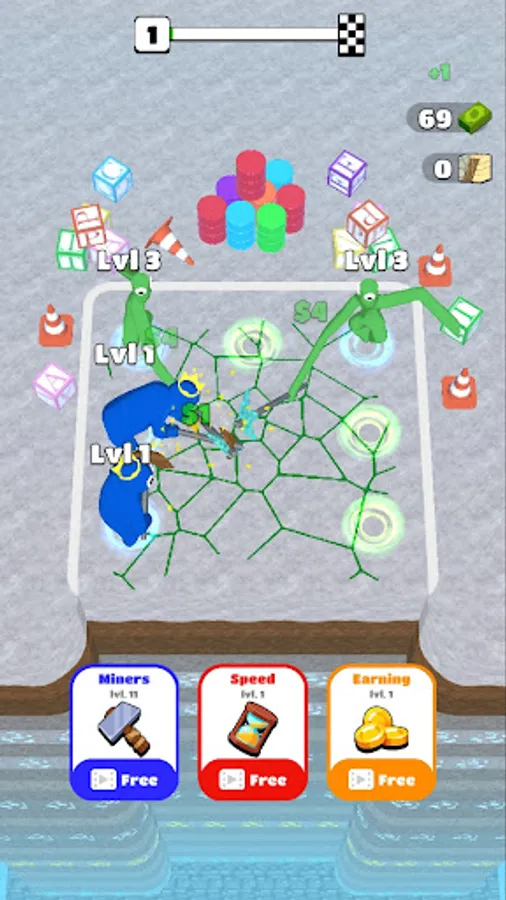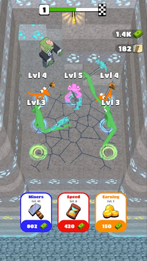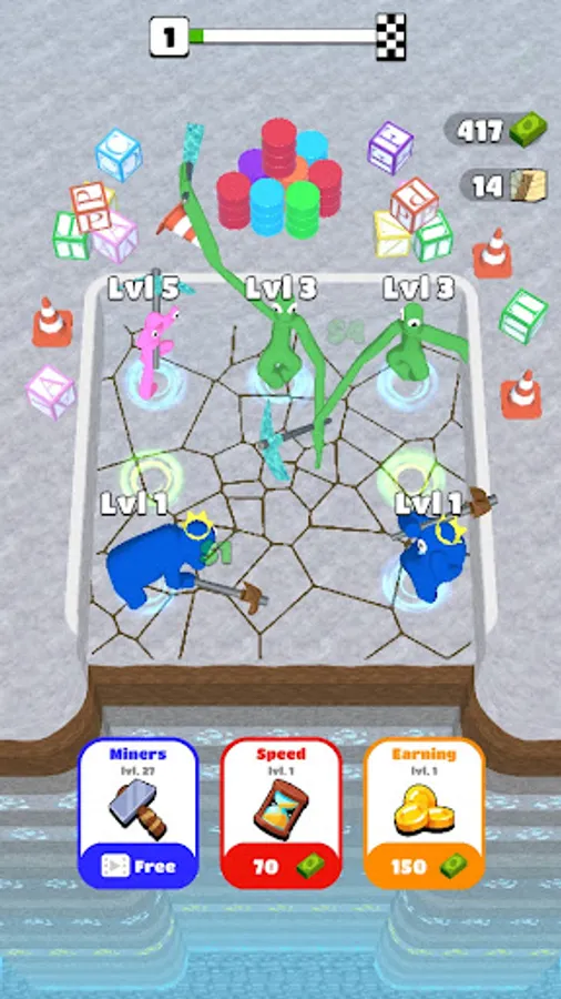 Select Rainbow Friends! Start digging in miner games by hiring idle miners and making your first profits in Rainbow Friends idle merge games. Play Idle Craft clicker games. Upgrade characters by merging them together to earn more in building games and dig faster in Rainbow friends idle mine tycoon. But be careful, legends say there are monsters that live deep in the ground in monster friends Idle Mine Craft Clicker Games. Anyway, keep up the pace and remember - hard work always pays off in rainbow friends Idle Clicker Money Games!